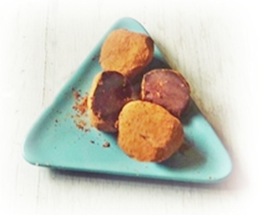 ~ Roll into walnut sized balls and place well-spaced on ungreased baking trays.