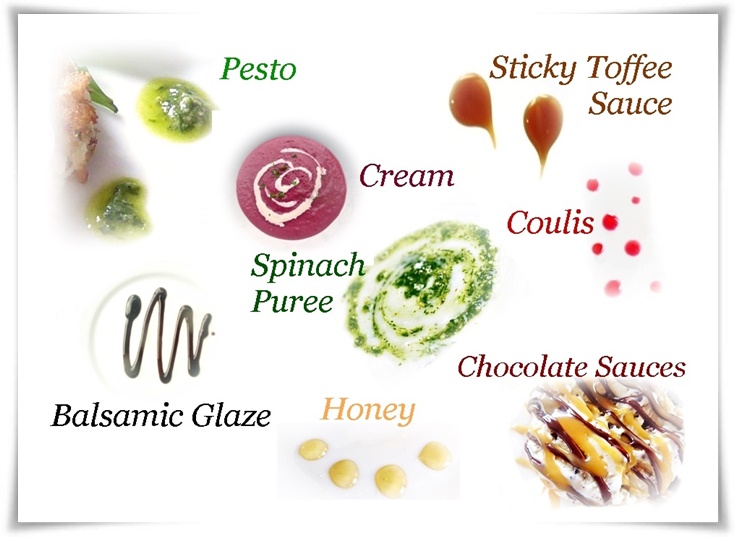 ~   Thicker sauces such as chilled fruit coulis will hold their shape well enough to dot about the place effectively.