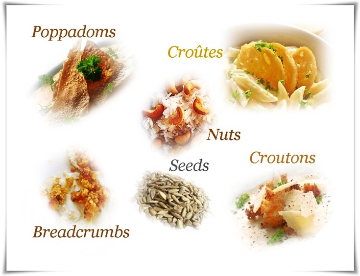 ~   Just chopped nuts, toasted or otherwise, can be a great flavour and texture counterpoint.