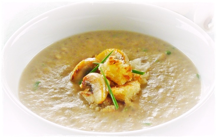 ~   Use a prime example of the main ingredient to garnish a dish as with these sautéed mushrooms on mushrooms soup (this is Mushroom, Garlic & Clotted Cream Soup from my book Soup (almost) the Only Recipe you’ll Ever Need).