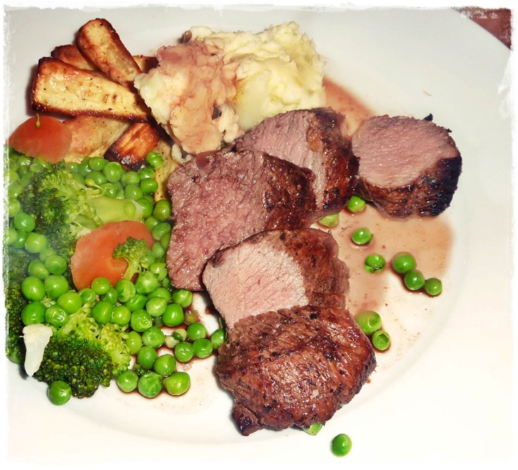 The meat was superb; tender, tasty and juicy. I’m afraid I then did something a little fattening with the meat juices but you don’t have to – I set the lamb aside in a warm place to rest (all cooked meats benefit from a rest, as do I) and added a splash of port to the pan, simmered a minute then added a knob of butter. It all tasted wonderful but the sauce didn’t look so good in the photo! Sorry about that!