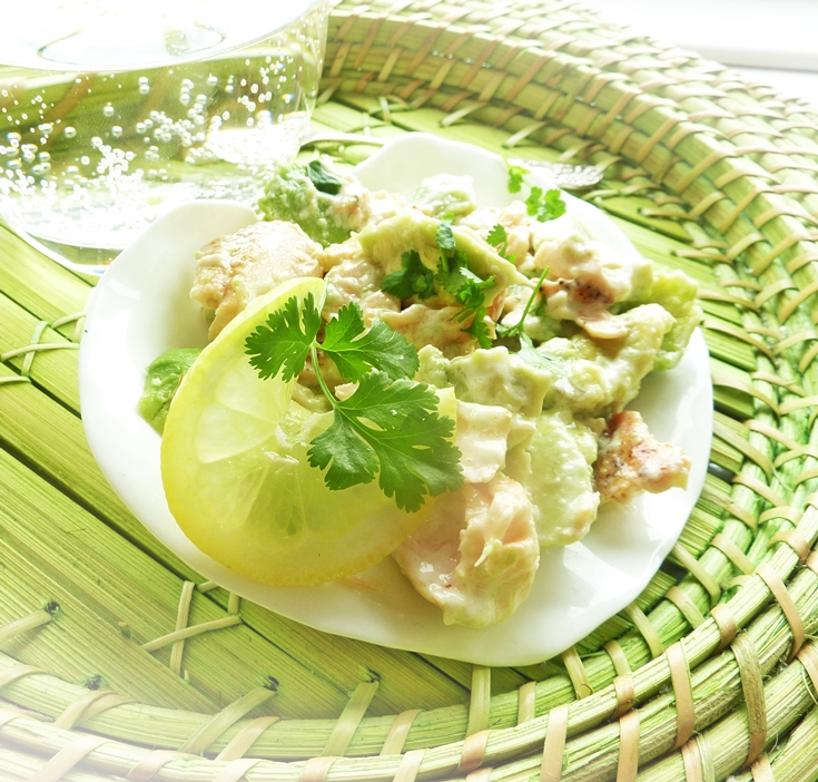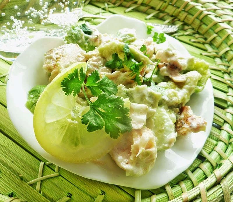 ~  Gently stir in diced ripe avocado and maybe a little mayonnaise.