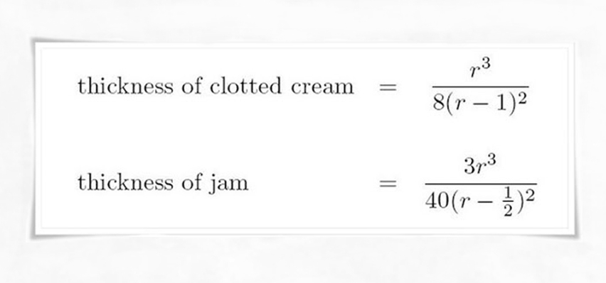 ~   If r is the radius of the scone, then we have the following formula for the thickness of the jam and the thickness of the cream …