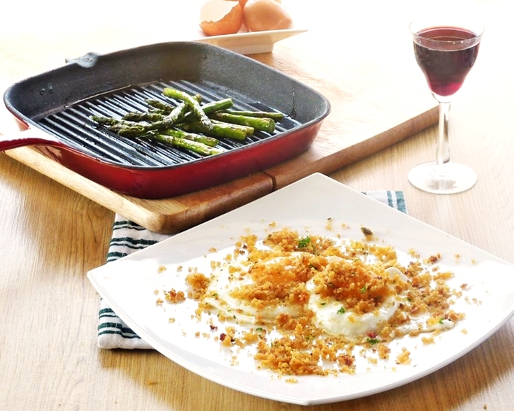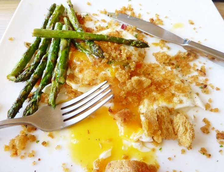 So I decided on my sudden lunch; grilled asparagus with crispy crumbs on fried eggs, This is how it ooked just after I’d made it …